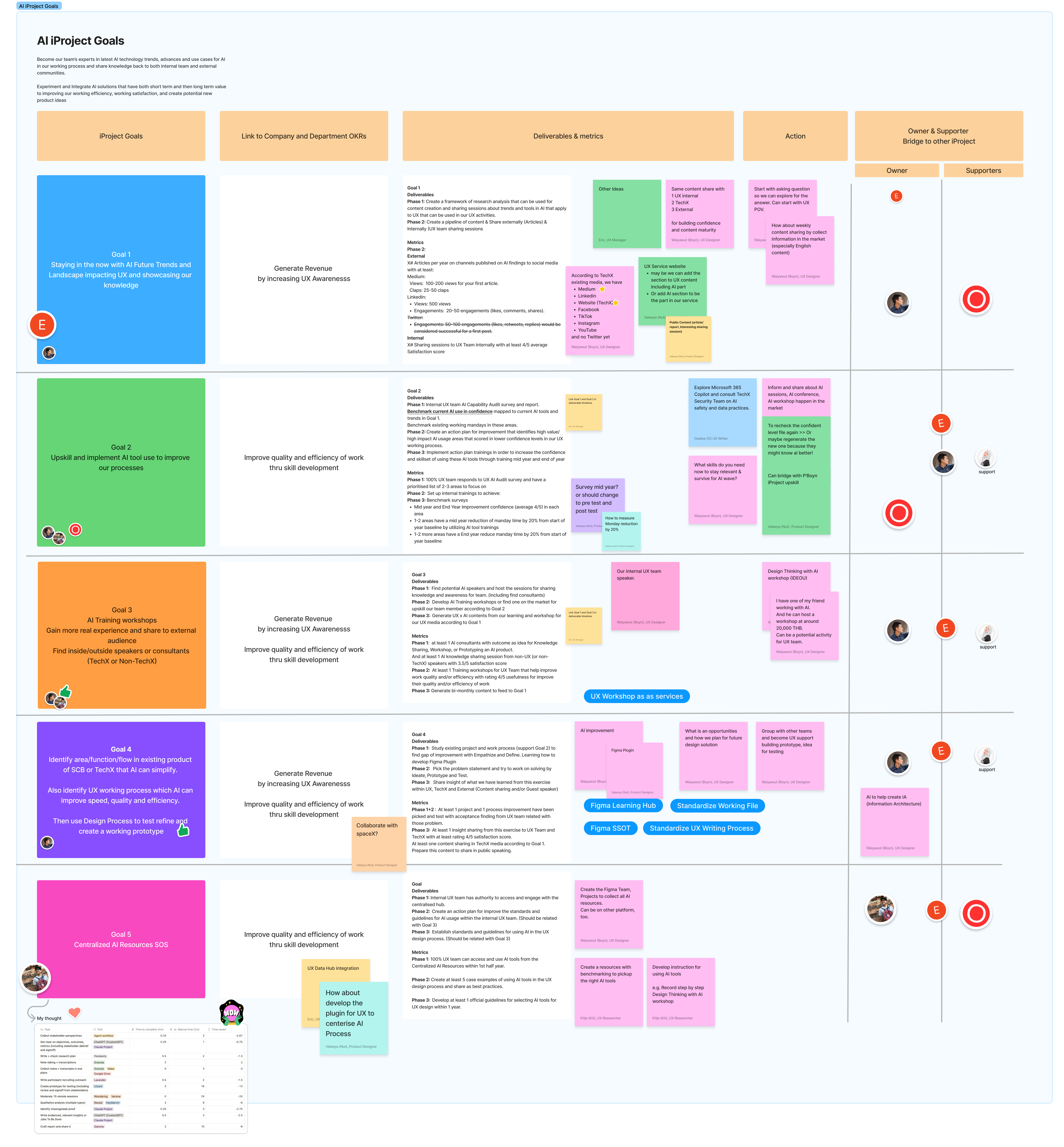 As an AI design team, we brainstormed and crafted research questions to survey our UX teammates and uncover their key challenges.