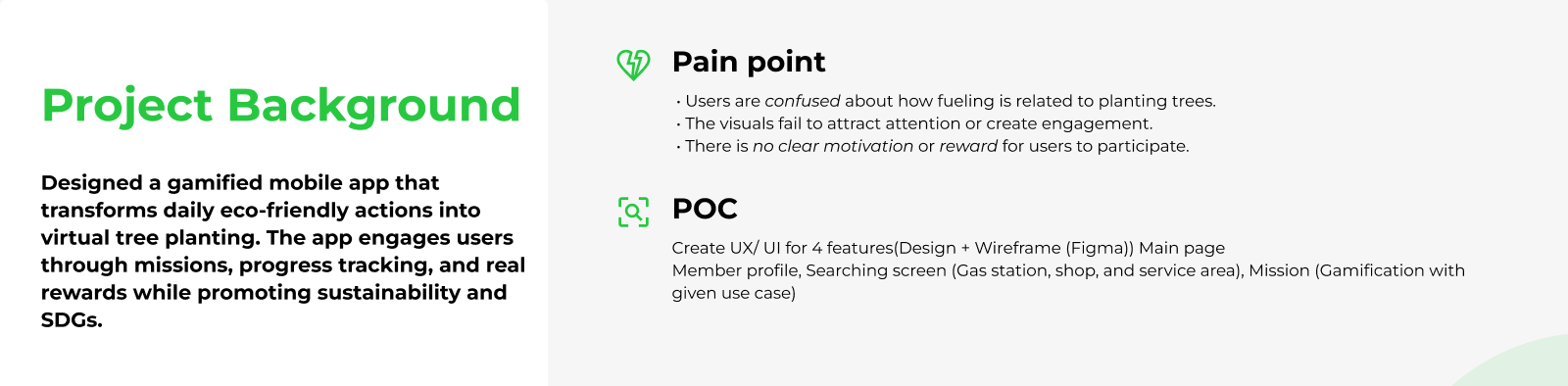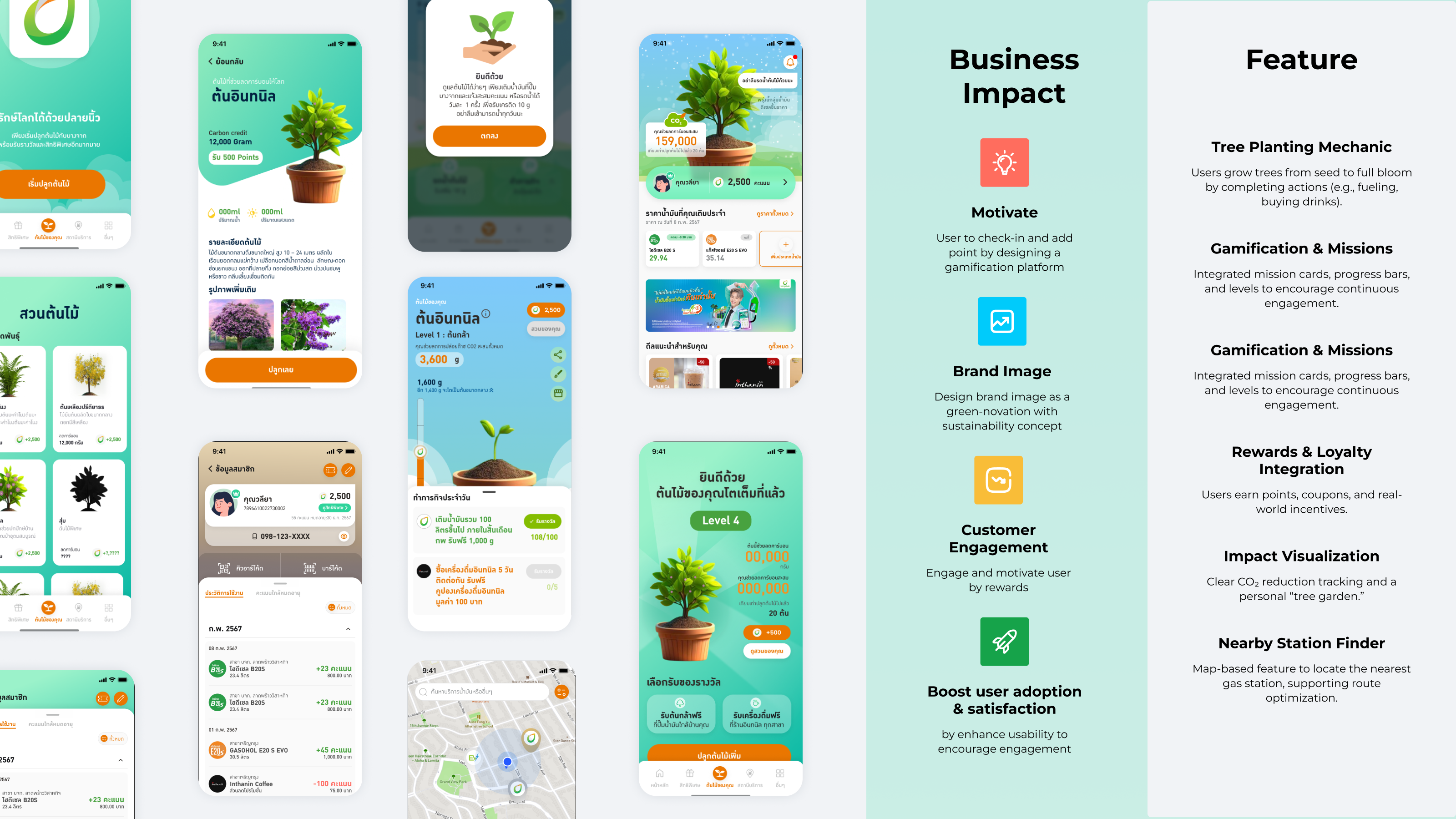 This project focused on engaging existing Bangchak customers with the application through gamification. Users could collect points and redeem them to water virtual trees, encouraging consistent app usage and fostering a stronger connection with sustainability goals.